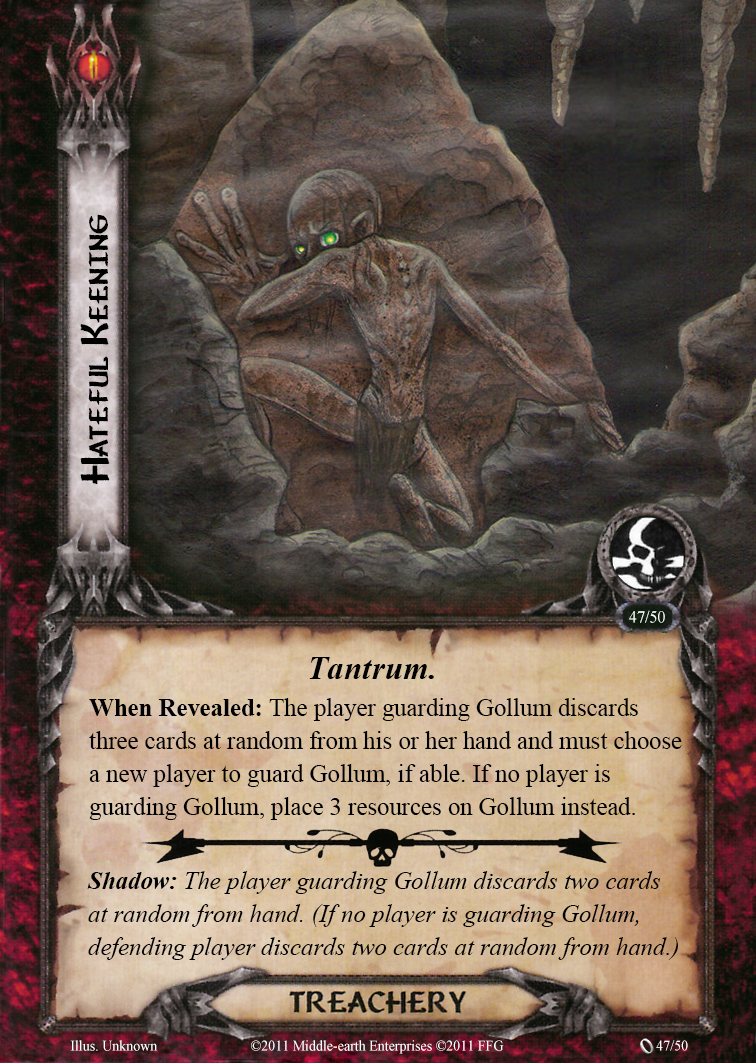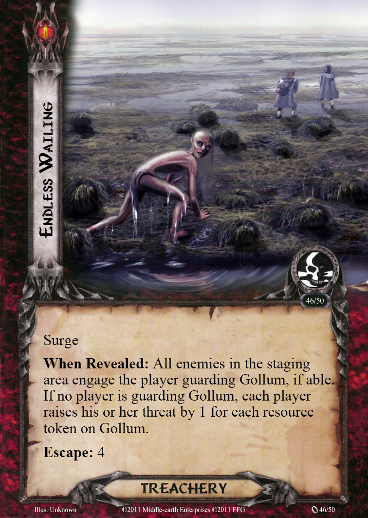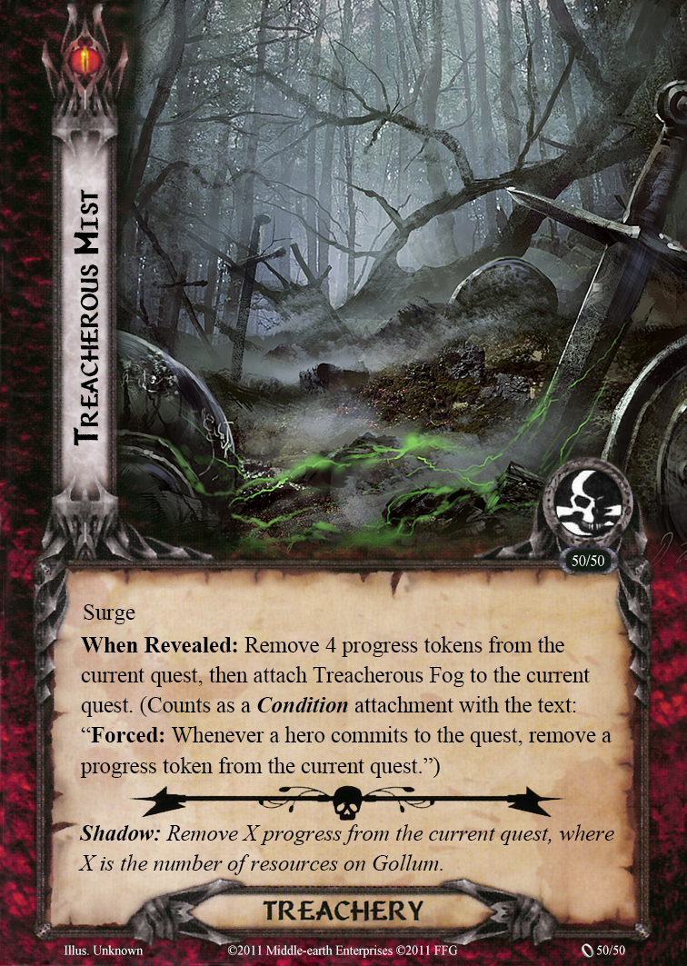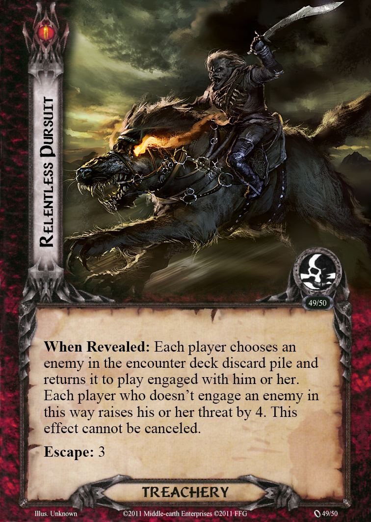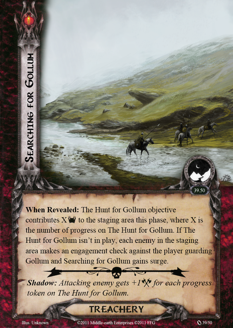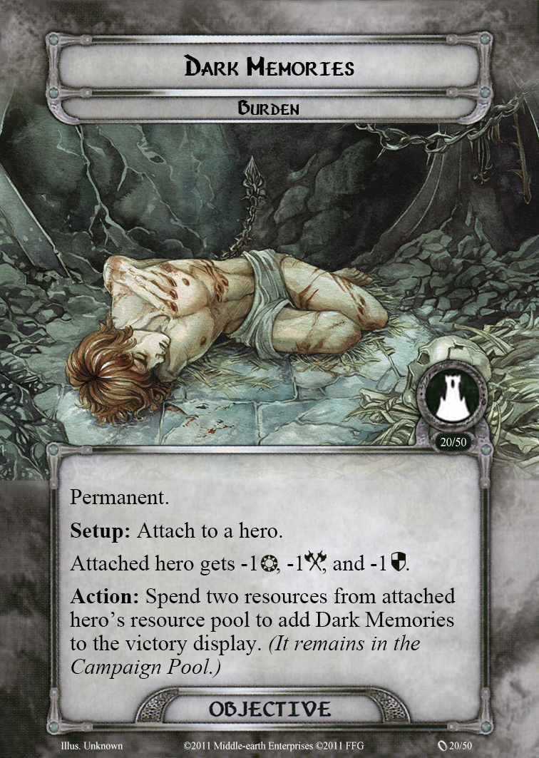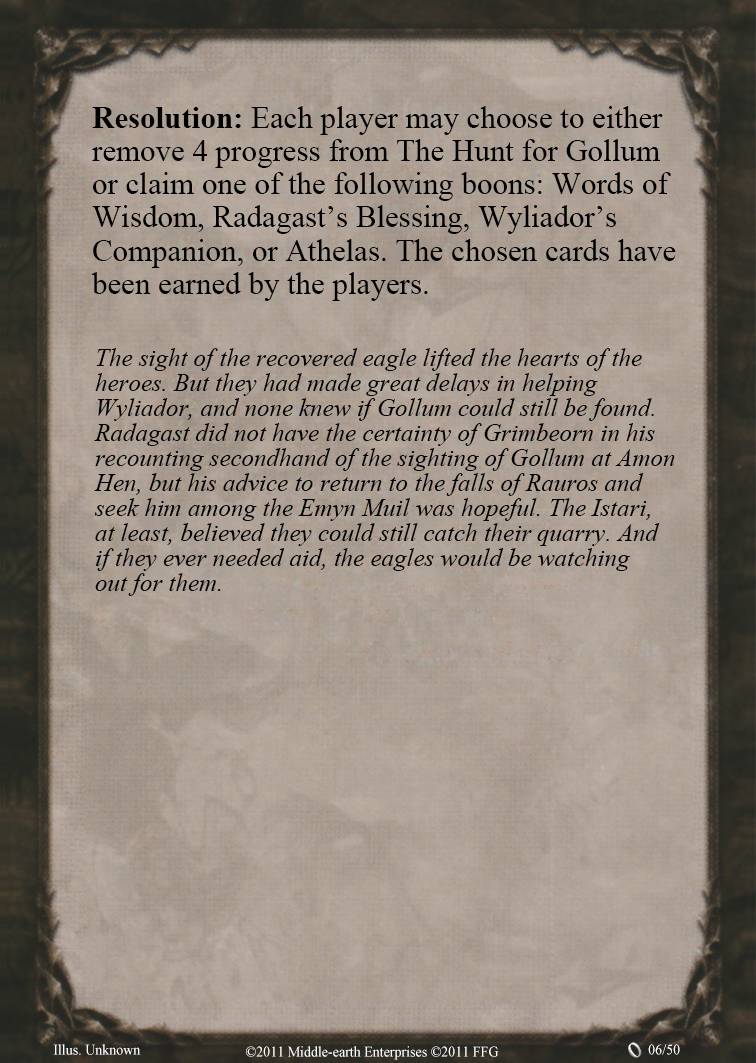These two custom campaigns allowed players to rediscover those cycles with campaign cards that provided unique and flavorful rules for each scenario; and added boons and burdens into the mix, a concept that was still very fresh for The Lord of the Rings LCG game system. Given that the chances of revised reprints (and thus, a campaign element) for these two cycles is very slim, this is one of the only ways to enjoy them as an interconnected experience, straight from the mind of a future FFG developer.